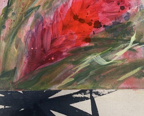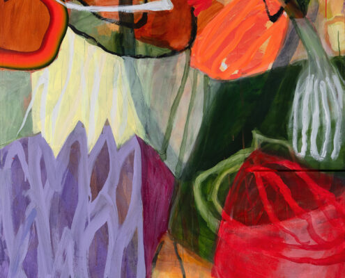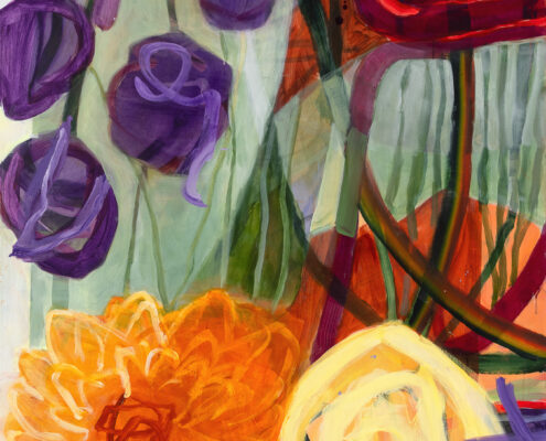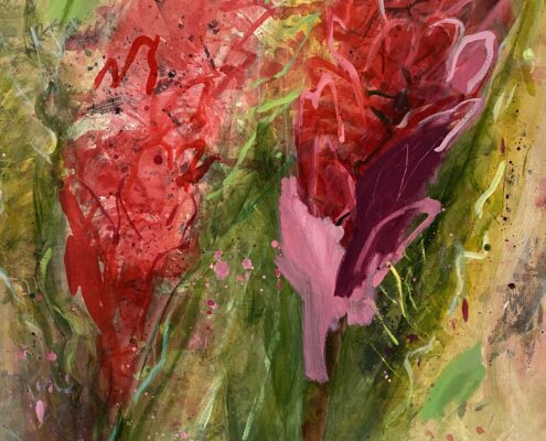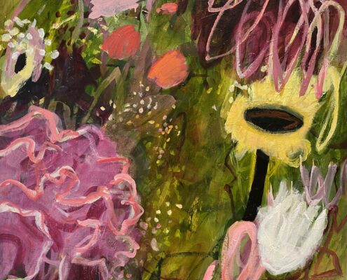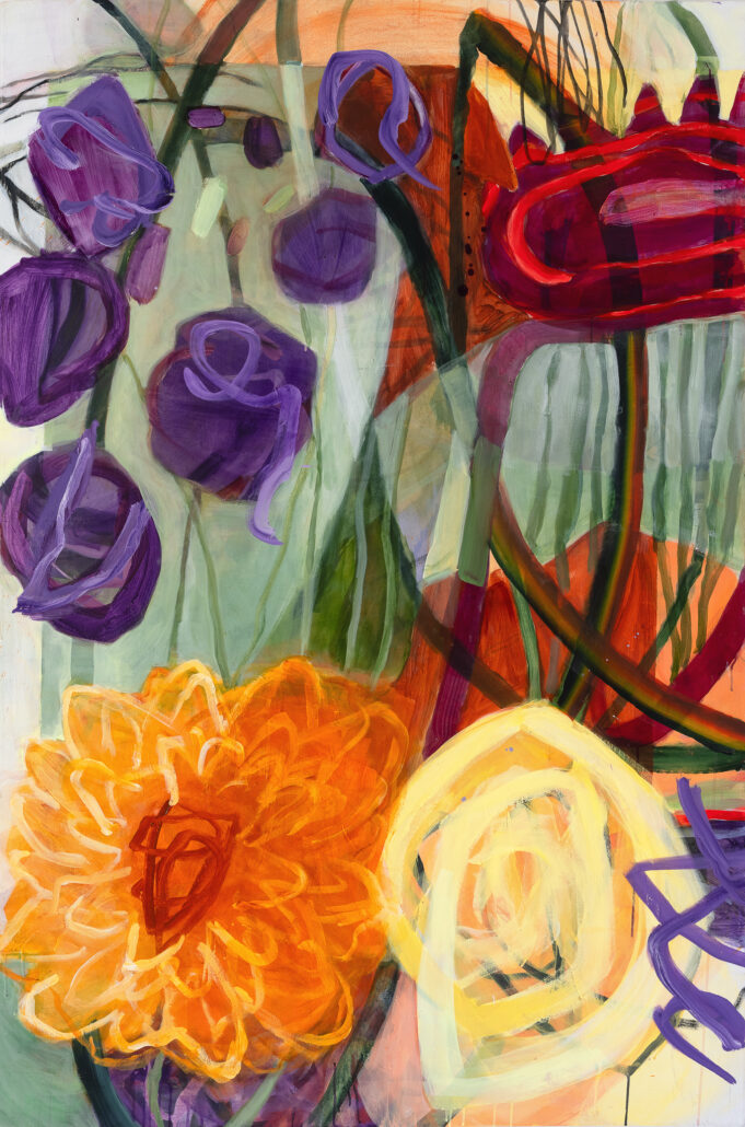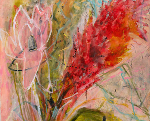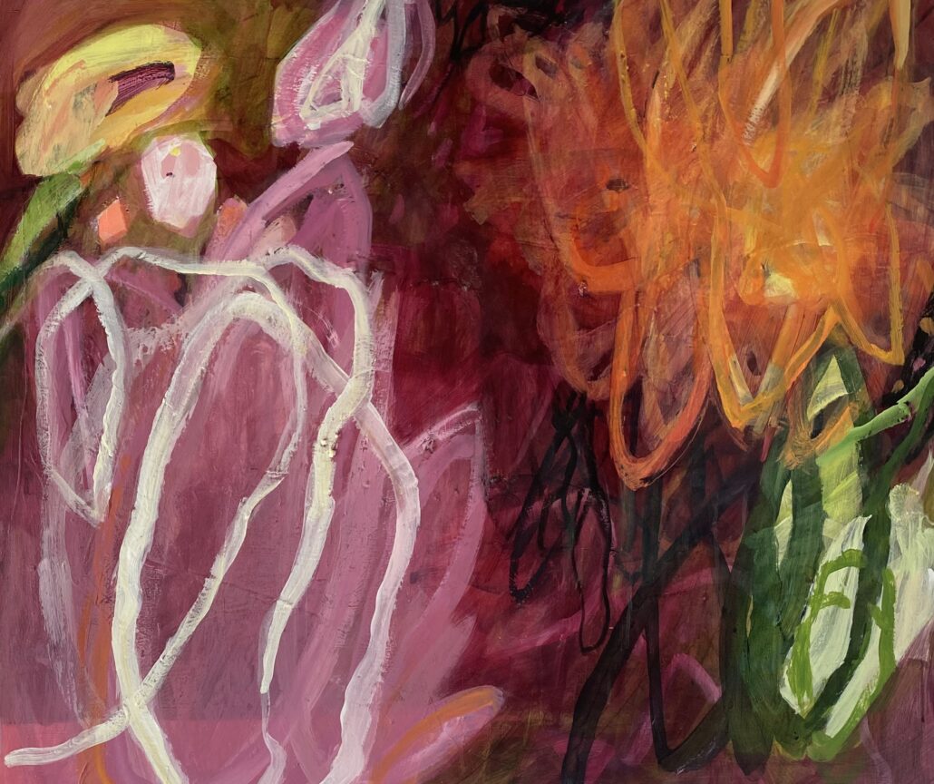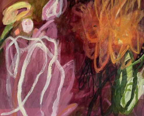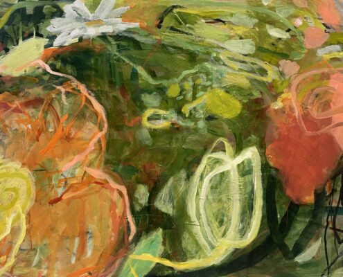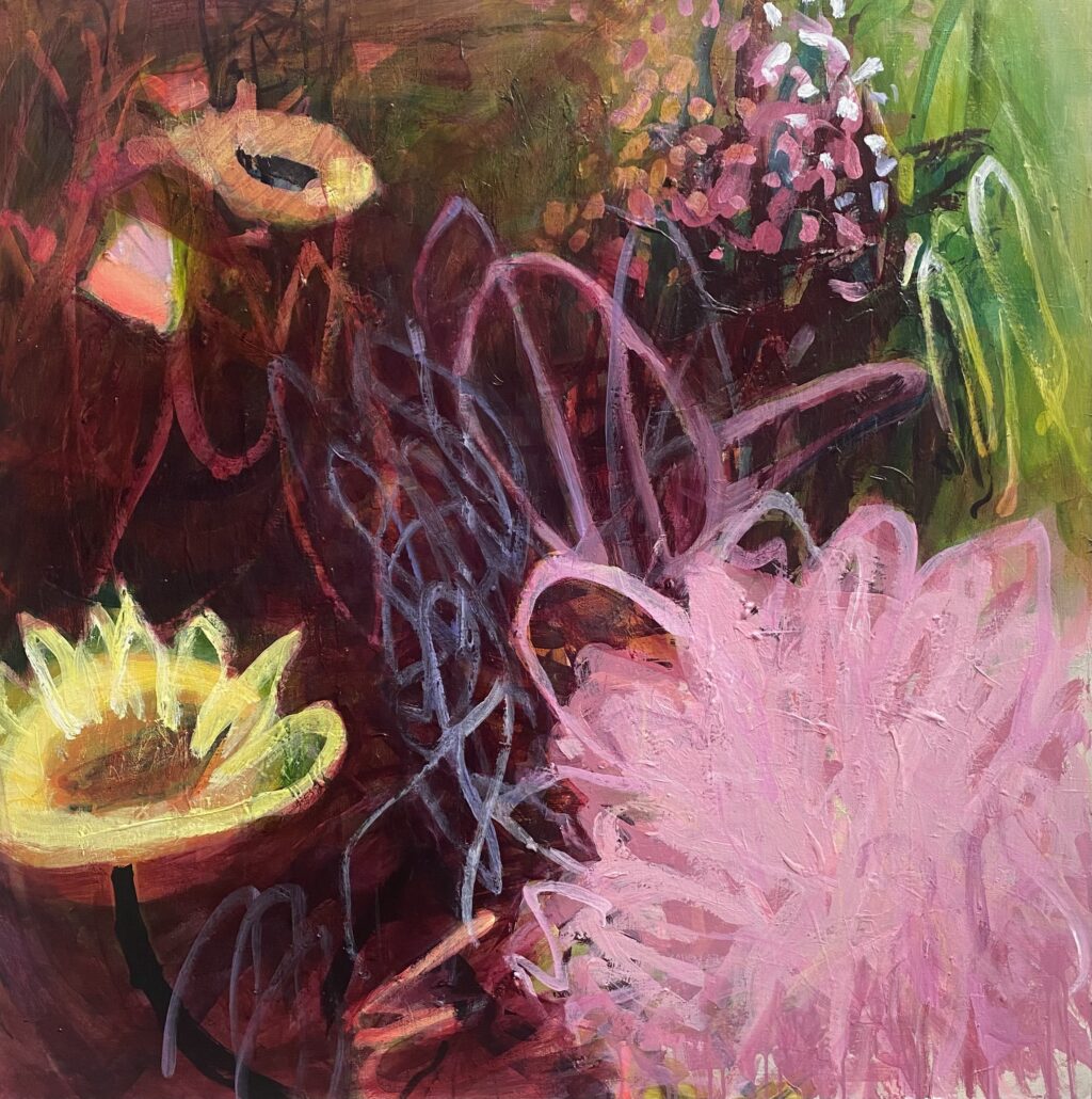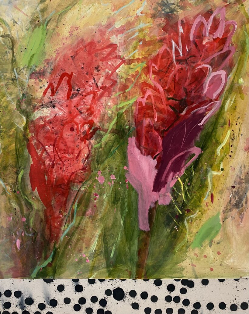 Through a process of gestural mark making, layering and subtracting, botanical encounters reveal themselves on an intuitive and responsive level to create this body of work.